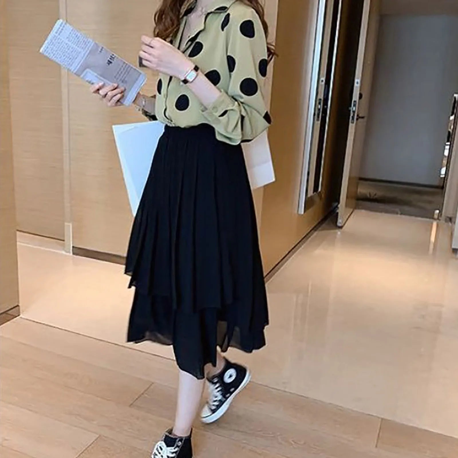 Elegant Polka Dot Print Chiffon Blouse