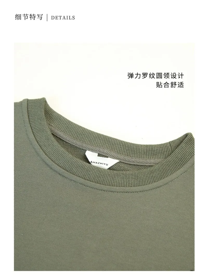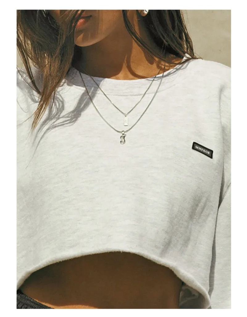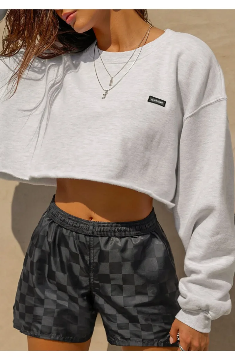 Vintage Fashion O-Neck Cotton Crop Hoodie